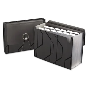 Expanding file features a sliding cover that keeps the flap out of the way when accessing documents. Expanding bottom allows additional capacity as well as the ability to stand on a desktop. Use elastic closure to secure the file and protect documents on-the-go. Expanding file is made of super durable poly and includes self-adhesive blank labels.