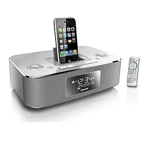 Philips DC290 Aluminium Docking system for iPhone/ iPod. Awake gently to great music from your iPhone/ iPod or get updated with news from the radio. Make your mornings brighter with crystal clear sound and add a dash of style to your bedroom with the aluminum cabinet. Features include: Playing and Charging your iPhone or iPod MP3 Link for portable music playback Dynamic Bass Boost for deep and dramatic sound Wake up to your iPhone/ iPod music or radio tunes FM digital tuning with presets and Dual Alarms with weekday and weekend settings