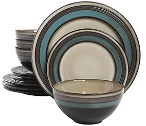 Gibson 116870 12-Piece Dinnerware Set in Teal Metallic Reactive Finish