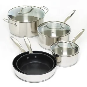 This 8-piece premium stainless steel cookware set is perfect for any kitchen. Made from durable materials, it ensures even heat distribution for perfect cooking results every time. The set includes a stock pot, two saucepans, two frying pans, and matching glass lids.