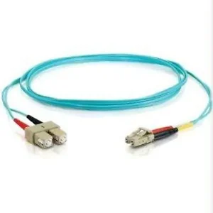 The cable has SC multi-mode (M) to LC multi-mode (M) connectors and supports a 50/125 micron fiber core, making it ideal for data centers, enterprise networks, and telecommunications. With its aqua color code, it complies with TAA standards, ensuring quality and reliability for professional use.