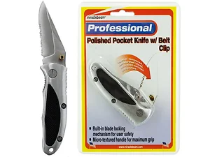 This versatile 5-inch pocket knife features a durable mixed serrated blade, perfect for various cutting tasks. The built-in belt clip allows for easy carry and accessibility, making it an essential tool for everyday use or outdoor adventures.