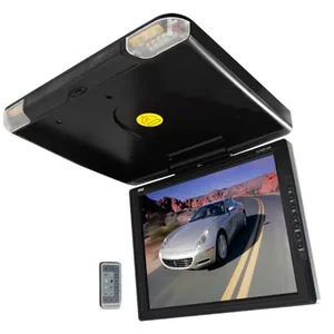 This 14' Pyle high-resolution TFT roof mount monitor has a crystal-clear display to keep the back seat busy and entertained! This screen has a 4:3 display ratio at a resolution of 1024 x 768 for a beautiful image. The monitor swivels up to 45 degrees left and right, has dual-dome lighting for illumination, and is equipped with 2 AV inputs, so you can hook up multiple devices without having to worry about messy wires. Tweak your monitor's display using the built-in controls, or use the included wireless remote control. The built-in IR transmitter can be used with wireless IR headphones to keep the noise low and the fun high! Requires 12 V.