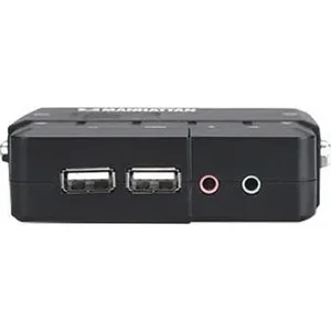 The Manhattan KVM Switch is a 2-port compact KVM switch with audio and mic switching functionality. Its USB support on the console side allows you to use a USB keyboard and mouse.
