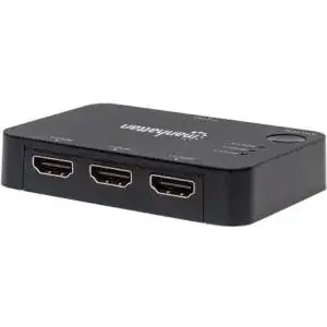 Easily connect multiple HDMI sources to a single display with the Manhattan Three-Port HDMI Switch for 4K at 30Hz resolution. It allows media enthusiasts to connect three Ultra HD video sources — including gaming consoles, Blu-ray players, satellite receivers, digital recorders, set-top boxes and other devices — to a single UHD 4K display. The switch automatically detects and selects the active HDMI source and routes the signal to your display. When more than one UHD video source is on at the same time, the included IR controller lets you remotely select a source or you can select it manually with the switch's built-in button.