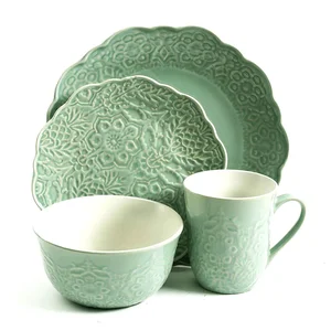 Gibson 124150.16 Portina 16-Piece Stoneware Dinner Set in Celadon