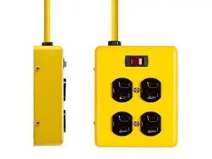 The POWER BOX features a durable design with a 6-foot yellow cord, making it easy to reach distant outlets. This power strip is equipped with four outlets to power multiple devices at once, perfect for workshops, homes, or offices.
