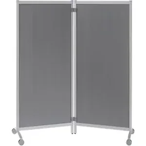 Mobile partition set lets you create your own personal modular work space. Two individual partitions with aluminum frames have a fixed foot on one side and two casters on the other. This set includes four easy-to-use connectors that hold the partitions together if desired.