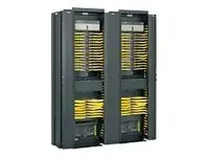 The Panduit Dual-Hinged Aluminum Rack Door is designed for 45RU racks, measuring 82.2 inches in height and 12.1 inches in width. Its innovative design allows for easy access to equipment while providing excellent cable management and aesthetic appeal. This durable black door complements various rack setups and ensures optimal organization of cables and components.