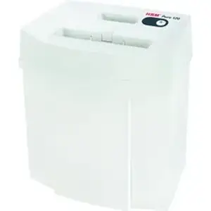 Marketing Information:Pure 120 Strip-Cut Shredder features a compact design to shred up to 12 sheets of personalized advertising, correspondence of all kinds, receipts and payment documents safely and reliably right at your desk. Hardened steel cutting rollers easily cope with staples and paper clips. To keep your operating cost at a minimum, this shredder does not consume any power in standby mode. Paper feed with overload protection reduces paper jams and sustains the high throughput of paper. A slight pressure on the safety element immediately stops the paper feed and prevents unintentional entry into the machine for safe use. Automatic operation starts on its own when fed with paper and automatically stops after your shredding is complete. Quiet operation minimizes noise development to prevent distracting others in quiet locations. Removable housing top allows you to quickly empty the 5.3-gallon bin for effortless disposal.