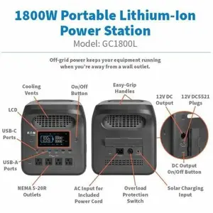 Eaton GC1800L PORTABLE POWER STATION - 1800W, LITHIUM-ION (LFP), AC, DC, USB-A, USB-C, QC 3.0,