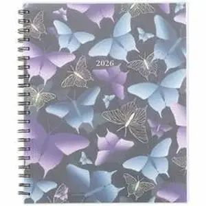 Mariah Weekly Monthly Planner makes it easy to track family events, fitness goals and everything in between so your dreams can take flight. Dated planning pages range 12 months from January to December and feature a QuickNotes area on both weekly and monthly pages to help you stay on track all year long. Two-page-per-week spreads include open daily sections from Monday to Sunday. Tabbed monthly pages help you see your big picture plans in an instant with unruled daily blocks from Sunday to Saturday and past and future monthly reference calendars. Special pages include a double-sided poly pocket, three-year reference calendar, holiday list, two future planning pages, five note-taking pages and a sticker sheet. Durable poly cover with blue and purple butterfly design helps the planner stand up to wear and tear no matter where your day takes you. Twin-wire binding helps keep your pages secure and won't snag on your bag or clothing.