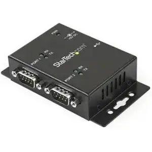 - 2 Port Industrial Wall Mountable USB to Serial Adapter Hub with DIN Rail Clips