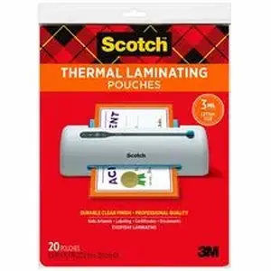 Marketing Information:Laminating pouches are designed for use with the 3M Scotch Thermal Laminator or any standard, thermal-pouch laminator. Pouches provide instant, two-sided protection for frequently handled or referred to items. Photo-safe pouches are clear to let important information show through with a professional finish. Preserve and protect documents, awards, signs, calendars, certificates, children's artwork, schedules and more.