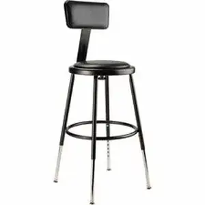 The fortified construction and soft comfort of the 6400-10 Series Heavy-Duty Padded Stools with backrests are ideal for hands-on educational settings like art rooms, science labs, home economics or shop classrooms. These reliable stools feature a sturdy frame of 18-gauge steel tubing securely welded to a 14"-diameter seat pan. Riveted through the steel pan is 0.5"-thick black vinyl cushioning that will provide years of dependable use. The footrest ring is securely bonded to each leg with four spotwell contact points. Height-adjustable legs extend from 18.5"-26.5" in 1" increments, and adjustable padded backrests can be moved 2" up/down and forward/back.