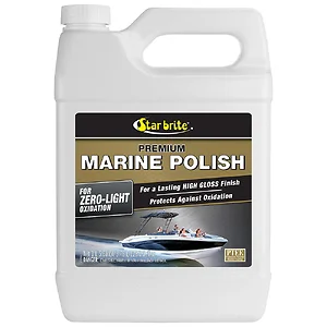 Premium Marine Polish is simply the best polish you can buy. The special polymers provide unmatched protection against UV rays, seal the surface to repel stains, and deliver a deep, long-lasting gloss. Application is simple, whether by hand or with a buffer; apply, let dry to a haze, and wipe off. Use once per year to keep new and restored boats looking their best. Ideal for all fiberglass, metal, glass, or painted surfaces. Note: if the surface is oxidized or hazy, use One Step Heavy Duty Cleaner Wax. Before polishing, wash the surface to remove grit and dirt (we recommend Star brite Boat Wash). Shake the bottle well. Apply product evenly with a clean cloth to a small area in a circular, overlapping motion while the polish is wet. Star brite Premium Marine Polish will quickly dry to a haze. Wipe off haze using another clean, dry cloth. Star brite Premium Marine Polish will provide exceptional protection against fading, chalking, rust, corrosion, and general degradation. Oil, dirt, and salt will not stick to treated surface and can usually be washed off with boat wash and water.