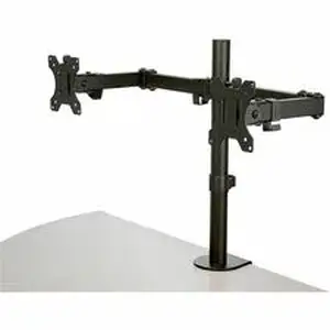 Work in comfort while saving space. This highly functional desk mount dual monitor arm brings you a cost-effective and versatile solution to an ergonomic workspace. Enjoy a wide range of motion with the double-jointed crossbar design plus tilt, swivel, rotation and height adjustment.