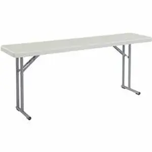 Marketing Information:BT1800 Series seminar folding tables provide convenient, usable space ideal for training and conference rooms. Lightweight, scratch-resistant plastic tabletop lets you conveniently store or transport to various rooms and workstations. Material offers heat resistance up to 212 degrees Fahrenheit. Textured, 18-gauge steel frame features leg braces and spring-loaded, push-button closing capability. Sturdy table supports up to 700 lb. Tabletop measures 2" thick.