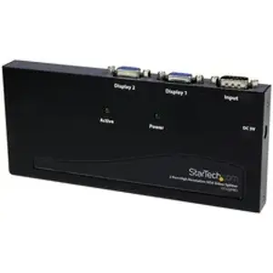 The ST122PRO 2 Port High Resolution VGA Video Splitter - 350 MHz splits a VGA video source signal to 2 monitors or projectors simultaneously - a professional grade solution that is perfect for presentations, classrooms, tradeshows, or in-store displays, where the highest quality video on several monitors is needed.