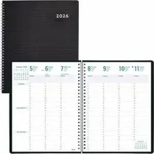 Easily manage scheduling using the Timanager DuraFlex Weekly/Monthly 7-Day Planner/Appointment Book. Dated planning pages feature 13 months from December to December with moon phases and tear-off corners. Two-page-per-week spreads include ruled daily columns with priorities, appointments in 30-minute increments from 7 AM to 8:30 PM from Monday through Saturday (7 AM to 6:30 PM Sundays), count of days/days remaining, special sections (contacts, correspondence, personal notes) and current and future months reference. Two-page-per-month spreads offer unruled daily blocks, numbered weeks, notes area, monthly objectives section, place to list important projects and past and future months reference. Two-piece, heavy-duty poly cover and flexible twin-wire binding deliver a sturdy writing surface. Extra bonus pages include dedicated notes and contacts (phone/address/email) sections. FCS certified planner is made of 100 percent post-consumer recycled fiber.