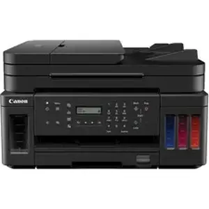 Marketing Information:All-in-one printer is designed for serious print productivity with a high page yield of up to 6,000 pages of black text or up to 7,700 vivid color pages. MegaTank printer delivers outstanding high yields resulting in a low cost per page and features excellent versatility thanks to an automatic document feeder (ADF) for scanning, copying and faxing. It also allows you to keep working through large print jobs with auto two-sided document printing, borderless photo printing and a 350-sheet input capacity. Multiple connectivity options allow you to connect through Wi-Fi and ethernet connections to print from computers, and connects wirelessly for mobile printing. Print high-quality documents and photos using FINE technology and the hybrid ink system with pigment black for sharp text documents and dye-based colors for vivid borderless photos up to 8.5" x 11".