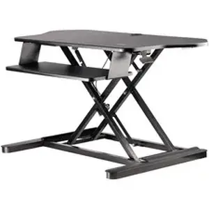 Create an ergonomic work space at a fraction of the cost of a standing desk. Simply place the sit-stand desk converter on your existing work surface (minimum 26" depth), to enjoy the benefits of a height-adjustable standing desk. This rising desk is shaped to fit into a cornered space in your work area.