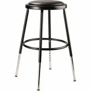 Marketing Information:The fortified construction and soft comfort of the 6400-10 Series Heavy-Duty Padded Stools are ideal for hands-on educational settings like art rooms, science labs, home economics or shop classrooms. Height-adjustable legs extend from 18.5"-26.5" in 1" increments. This reliable stool features a sturdy frame of 18-gauge steel tubing securely welded to a 14"-diameter seat pan. Riveted through the steel pan is 0.5"-thick black vinyl cushioning that provides years of dependable use. The footrest ring is securely bonded to each leg with four spotwell contact points.