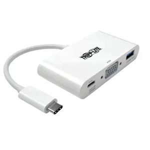 Eaton Tripp Lite Series USB-C to VGA Adapter with USB 3.x (5Gbps) Hub Ports and 60W PD Charging, White