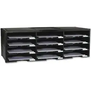 Marketing Information:12-compartment organizer brings order to your home or office clutter. The polystyrene construction provides a durable yet lightweight organizer that can hold a combined weight of 60 lb. Built-in label holders ensure a professional appearance and functional use. Large-capacity compartments hold up to 6,000 sheets of paper to easily organize large amounts of files and documents. Space-saving design is stackable up to six units high to provide up to 72 different compartments.