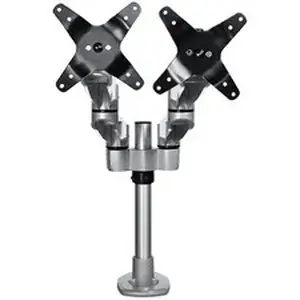 Create an ergonomic workspace with this premium desk-mount dual monitor arm, for monitors up to 27" each. The two articulating monitor arms with dual-swivel action offer a wide range of motion side to side. The attractive silver finish enhances the aesthetics of your workspace.