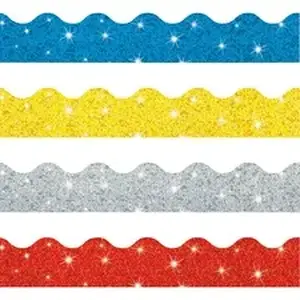 Spruce up your classroom and kick up the fun with this variety trimmer pack ready to brighten your walls, create eye-popping displays, enhance themed events and more. Layer patterns on these Sparkle Terrific Trimmers with solid or metallic trimmers (sold separately) for extra impact. Set includes Sparkle Trimmers in blue, silver, yellow and red.