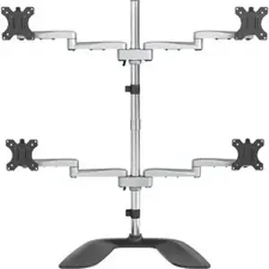 Boost productivity and customize your workspace with this quad-monitor stand, suspending four monitors above your desk. Enjoy optimum viewing with four articulating monitor arms, providing a wide range of motion. The free-standing base gives you flexibility in placing your setup within your workspace.