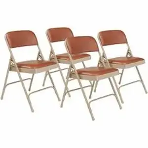 This comfortable 1200 Series Premium Upholstered Folding Chair is made with the combination of durable vinyl wrapped over 1.25" of soft foam on a strong steel frame. This institutional-grade chair features a unique full-size, double-contoured backrest upholstered and firmly secured to the frame with six rivets. The powder-coated steel frame is made from heavy-duty 18-gauge round tubing and features two U-shaped double-riveted cross-braces, one in front and two in the back, to securely support the double-hinged legs. Color-coordinated V-tip stability plugs provide added reinforcement at the frame's junction and matching replaceable glides prevent floor damage. The 1200 Series meets MAS Certified Green and ANSI/BIFMA standards.