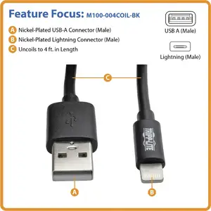 Eaton Tripplite Series Connectivity M100-004COIL-BK Apple Cable Coiled