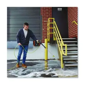 2. Place detergent application siphon tube and screen filter directly into solution. Open meter valve (if applicable) for maximum product flow. For reservoir machines, pour concentrate (full strength) directly into pressure washer.