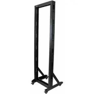 The durable dual-post server rack is made of heavy-gauge steel, instead of aluminum, to ensure a stable installation platform. The rack supports a static loading capacity of up to 600 lb. (272 kg), and it's compliant with several industry rack standards (EIA/ECA-310, IEC 60297, DIN 41494), to provide a stable platform that eliminates the need for concrete mounting kits.