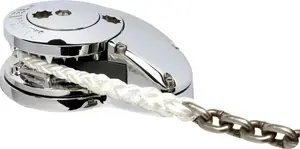Model: RC101012VThe powerful combined stainless steel (AISI 316) and chromed bronze RC10-10 fully automatic windlass series is designed to effortlessly retrieve and deploy 10 mm (3/8 in) chain spliced to 16 mm (5/8 in) three strand or 8-brait (plait) rope. A sleek