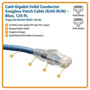Eaton Tripplite N202-125-BL Cat6 Cable (RJ45 M), PoE, Blue, 125 ft.