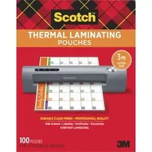 Marketing Information:Laminating pouches are designed for use with the 3M Scotch Thermal Laminator or any standard, thermal-pouch laminator. Pouches provide instant, two-sided protection for frequently handled or referred to items. Photo-safe pouches are clear to let important information show through with a professional finish. Preserve and protect documents, awards, signs, calendars, certificates, children's artwork, schedules and more.
