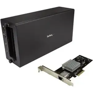 Marketing Information:"This Thunderbolt™ 3 to 10GbE NIC lets you connect your Thunderbolt 3 enabled device to a 10 GbE network. This adapter combines the StarTech.com Thunderbolt 3 PCIe Expansion Chassis (TB31PCIEX16) and the PCI Express 10G NIC (ST10000SPEXI), giving you one DisplayPort output, one additional Thunderbolt 3 port and one RJ45 (10GbE) port. Reliable, high-performance and versatile multimode connectivity This 10G network card utilizes the Intel® X550 chipset with Intel® Virtualization Technology for connectivity, delivering the power, performance and enhanced capabilities you need for dependable network connections. Install and assemble with ease Requiring only a Phillips type screwdriver, this Thunderbolt 3 to 10GbE NIC can be assembled and connected in minutes. It connects easily through a single Thunderbolt 3 port on your computer. Change up your chassis The Thunderbolt 3 chassis not only pairs well with the 10GbE NIC--you can swap the NIC out for other PCIe cards, to help support other functionality and performance. With the extra TB3 port and DP output built into the chassis, you will always have the ability to hook up extended displays to effortlessly multitask. The TB31PCIEX16 and ST10000SPEXI are backed by a StarTech.com 2-year warranty."
