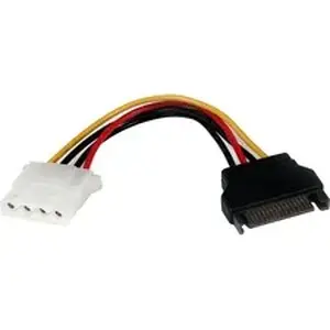 The LP4SATAFM6IN SATA to LP4 Power Cable Adapter features an LP4 female power connector and a male SATA power connector, allowing you to connect an IDE hard drive to a Serial ATA power connector provided by the computer power supply.