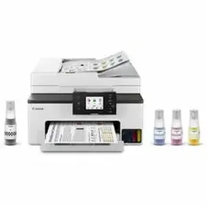 Marketing Information:Print, copy, scan and fax with this MAXIFY GX2020 Wireless MegaTank Small Office All-in-One Printer. Four-Color Pigment Ink System creates sharp text that is smear-proof when highlighting. A single set of inks produces up to 3,000 black/white pages and 3,000 color pages. Print in resolutions up to 600 x 1200 dpi. Print speeds produce documents as fast as 15 ipm in black/white and 10 ipm in color. Duty cycle handles up to 27,000 pages per month. Copy and scan multipage documents with ease using the 35-sheet auto document feeder (ADF). Fax memory stores up to 250 pages. Printer features a 250-sheet input tray and versatile media support that lets you print on envelopes, business cards, banners and more. Versatile connectivity options include Hi-Speed USB, Wi-Fi and Ethernet for Wired LAN support. Print from your favorite mobile device using the Canon Print app, Apple AirPrint and Mopria Print Service. 2.7" LCD touch screen lets you easily navigate settings.