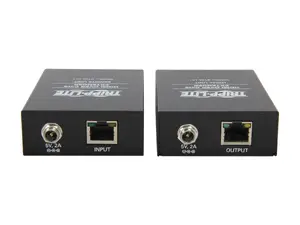 The Tripp Lite B126-1A1 active extender kit is the perfect solution for those who need to extend a HDMI signal over a long distance with a single Cat5e/6 patch cable. In addition to connecting a remote display, the local unit also provides a HDMI output for connecting to a local monitor. When using 24Awg, Solid Wire Cat5e/6 cable (Tripp Lite N202-Series), the B126-1A1 can extend a 1080i (60Hz) signal up to 200 ft.; or, a 1080p (60Hz) signal up to 150 ft.. The remote unit comes with a built-in Equalization setting, which allows for adjustment of the video image. No need to make separate purchases; the B126-1A1 kit comes with both local and remote units. Both stereo audio and 7.1 channel surround sound are supported, as well as HDCP protected content. Mounting hardware is included for both the local and remote units, allowing them to be rackmounted, wallmounted or pole mounted. Compliant with the Federal Trade Agreements Act (TAA) for GSA Schedule purchases. 1 year limited warranty. Key Features Two piece kit includes both local and remote units Extends a 1080i (60Hz) signal up to 200 ft.; or, a 1080p (60Hz) signal up to 150 ft. when using 24Awg, Solid Wire Cat5e/6 cable (Tripp Lite N202-Series) Remote unit features a built-in Equalization setting, allowing for adjustment of the video image HDCP compatible Compatible with both stereo audio and 7.1 channel surround sound audio Mounting hardware included for both the local and remote units, allowing them to be rackmounted, wallmounted or pole mounted Local unit includes a HDMI output for connecting a local monitor No software or drivers required Compatible with all operating systems Compliant with the Federal Trade Agreements Act (TAA) for GSA Schedule purchases 1 year limited warranty Package Includes B126-1A1 local unit B126-1A1 remote unit Screwdriver for adjustment of Equalization (x2) Mounting hardware (x2) External power supply (Input: 100-240V, 50/60Hz, 0.5A Output: 5V, 2A) Owner's manual