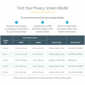 Laptop privacy screen protector darkens your screen from the sides to prevent visual eavesdropping; Provides clear viewing angle of 60 (+/-30 ) -For 14-inch notebooks w/ 16:9 displays; Filter won't interfere with webcams/sensors/closing the lid -Reduce eye strain by blocking up to 51% of blue light; Reversible laptop computer privacy screen with anti-glare matte and high-gloss sides - Attach the ultrabook monitor privacy screen using the transparent adhesive strips or the slide mount tabs
