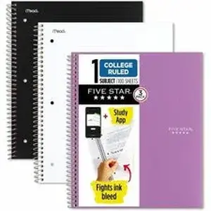 Wire-bound notebook features durable, water-resistant covers to keep your notes protected all year long. College-ruled, high-quality paper resists ink bleed to help keep your writing legible. Neat sheet pages are perforated for clean, consistent removal. Spiral lock wire prevents the coil from snagging onto your clothing or backpack. Reinforced storage pocket help prevent tears and offers convenient storage for your loose papers.
