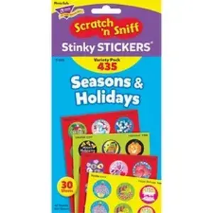 Variety of Stinky Stickers includes season and holiday themes. Each sticker offers a scratch-and-sniff surface that delivers a burst of fragrance. Use as rewards, incentives and collectibles. Stickers are acid-free, nontoxic and safe for use on photos. Ideal for teaching students in kindergarten to third grade (ages 5 to 8).