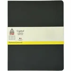 The Dome 8 X 10 Inch Softcover Personal Journal offers convenience and professional style in a compact size. The black flexible cover is lightweight, making it perfect for work, school, or journaling on the go. Inside are 192 pages of premium 60-lb acid-free paper that resist bleed-through and support a clean, enjoyable writing experience. The lay-flat construction allows effortless writing from edge to edge, and the expandable pocket provides extra space for small notes or cards. Made in the USA from 10% recycled materials, this notebook exemplifies Dome's legacy of quality and reliability.