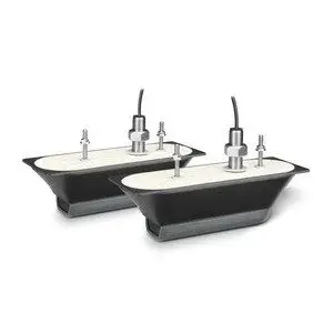 The CHIRP ClearVu/ SideVu elements have a power rating of 500 W per element and operating frequencies of 260/455 kHz. The traditional CHIRP sonar has a power rating of 600 W and operating frequencies of mid-band CHIRP 80-160 kHz. It includes a built-in fast-response temperature sensor. For hull deadrises less than 25 degrees.