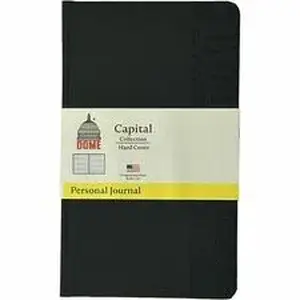 The Dome 5 x 8 Inch Softcover Personal Journal offers convenience and professional style in a compact size. The black flexible cover is lightweight, making it perfect for work, school, or journaling on the go. Inside are 192 pages of premium 60-lb acid-free paper that resist bleed-through and support a clean, enjoyable writing experience. The lay-flat construction allows effortless writing from edge to edge, and the expandable pocket provides extra space for small notes or cards. Made in the USA from 10% recycled materials, this notebook exemplifies Dome's legacy of quality and reliability.