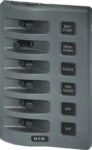 Model: 4307-BSSMany switch panels mounted on the dash or flybridge do not stand up to harsh marine environment. WeatherDeck(R) Switch Panels are waterproof and rated IP67 (for temporary immersion in water) and use materials that won't deteriorate in the harsh sun, salt, and water. Many small boats, which already have circuit protection and do not run at night, simply need a switch panel which is waterproof. The WeatherDeck(R) Switch Panel has all the rugged features of the proven WeatherDeck(R) Panel family however does not have the added cost of backlighting and circuit protection.